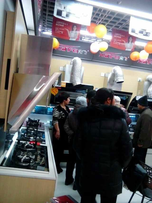 2014年12月26日,甘肃省嘉峪关市的苏宁旗舰店重装开业!刚刚过完圣诞的人们人头攒动,团团围挤在先飞展柜旁,热火朝天地选购先飞厨卫产品。