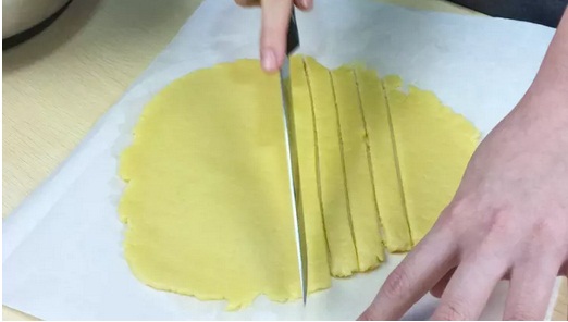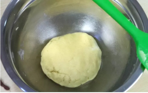 1.黄油室温软化,分别加入低筋面粉、全蛋液、水(牛奶),糖拌匀,用手抓成面团,用保鲜膜包好冷藏松弛30分钟。(图1)
