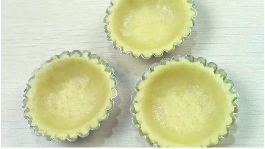 用料:低筋面粉 150g、黄油 60g、蛋液 30g、水(牛奶) 20g、糖 15g、黄油 10g、糖 30g、苹果 2个、盐 少许、柠檬汁 少许、蛋挞模 6个、蛋液 少许(刷表面)