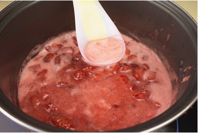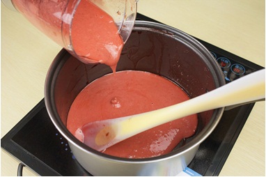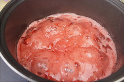 10.煮好的草莓酱会比较浓稠(大概需要30-40分钟左右),草莓酱倒入料理机搅碎;(图10)