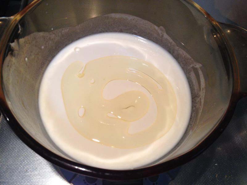 网上常规的方子都是油和水煮沸后倒入面粉,但我以前做这一步时,即使过了两遍筛的面粉有时还是混合得不够均匀,所以这一步骤我改为将水和面粉先混合搅伴至没有颗粒,再开始煮。(附图16,17,18)