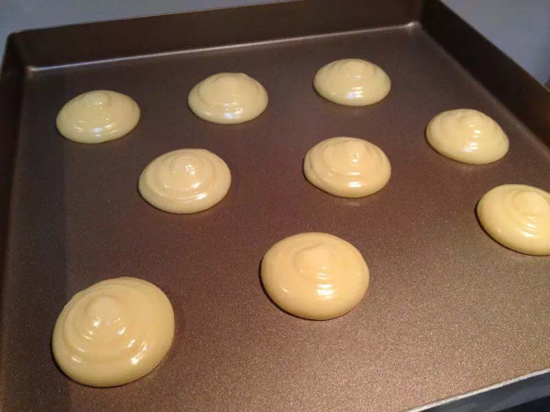 蛋黄糊:两个大个鸡蛋黄或三个小个鸡蛋黄、水25ML、柠檬榨汁15ML、色拉油30ML、低粉50克