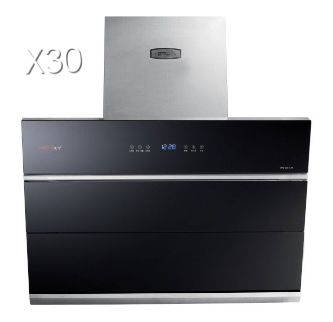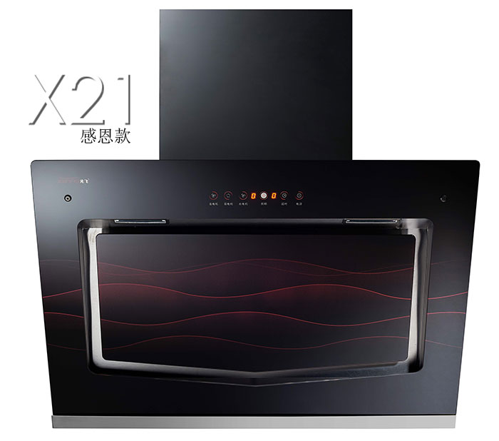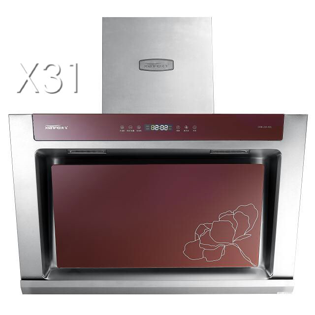 先飞“蒸汽喷洗”系列双电机烟机共有X30、X48、X31,主战中高端市场。其中X30烟机另外还带电动门功能,X48采用大弧度集烟腔设计,笼烟效果有效提升,X31又分为纯黑版与玫瑰红版。以先飞X30烟机为例,不仅在KA卖场大卖热卖,而且在2、3级市场也是大显身手,骁勇善战!(产品照片X30、X48、X31(黑色与红色)