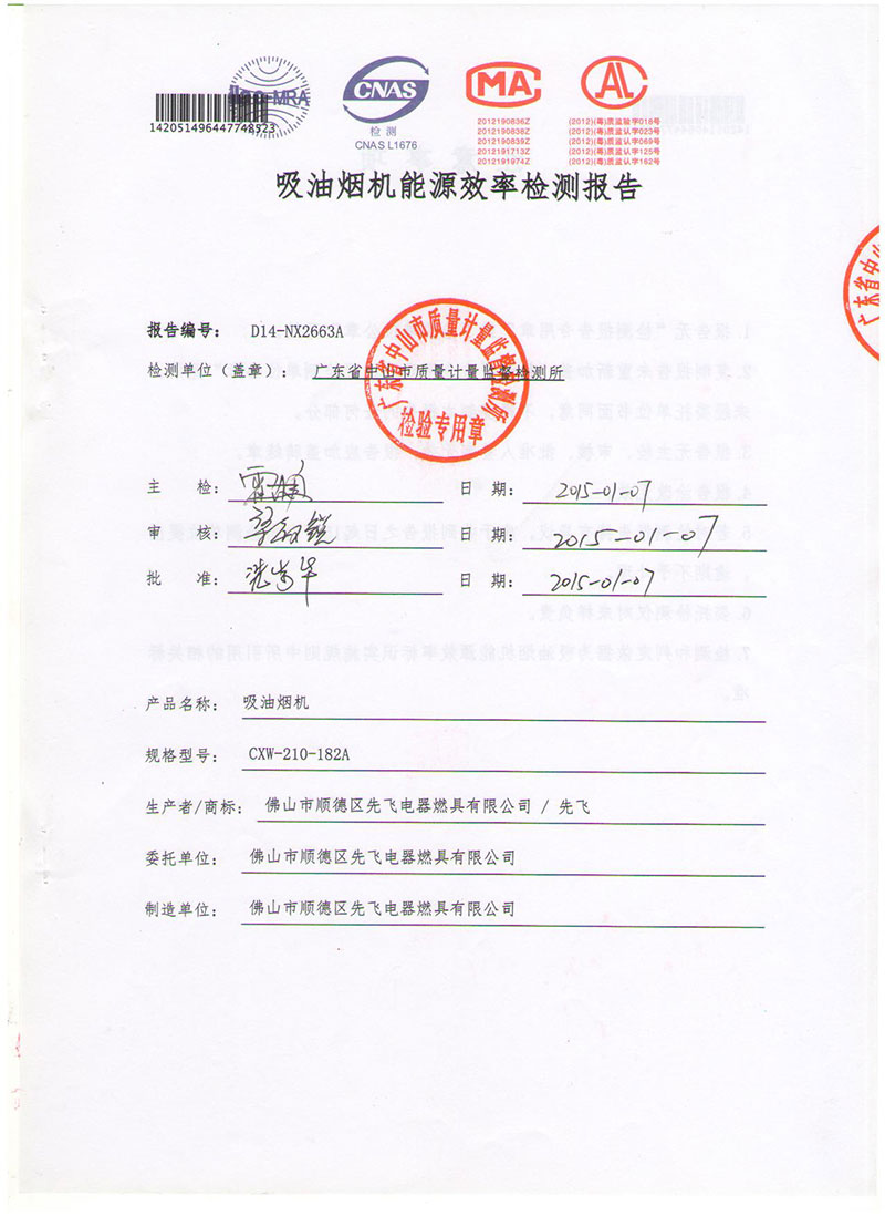 在2015年先飞厨卫长沙经销商年会上,先飞公司再爆喜讯:先飞吸油烟机一次性率先通过国家一级能效认证!