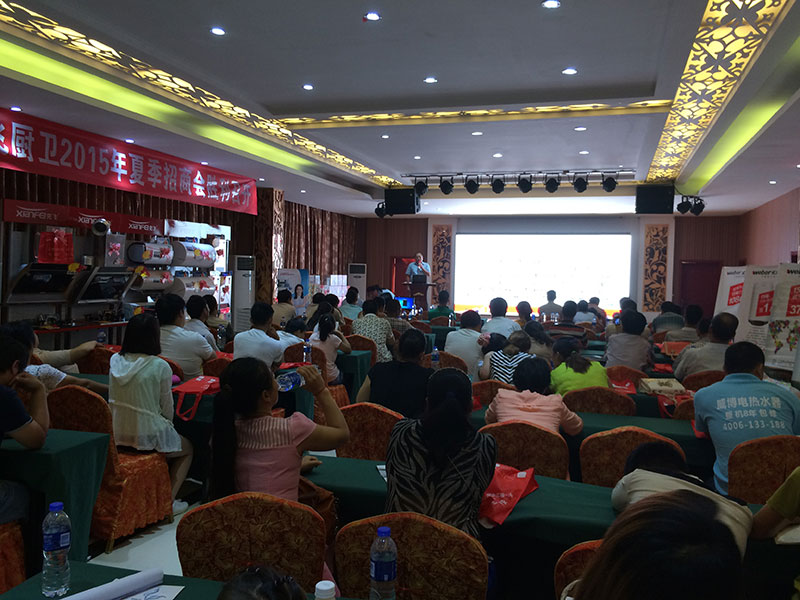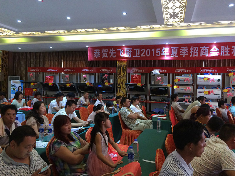 2015年7月20日,南阳先飞招商会议在王府饭店隆重召开,到会客户多达50多家,为南阳地区厨卫行业优秀零售商的大聚会。先飞公司聂总在会上作了先飞公司介绍、厨卫行业分析与先飞品牌优势推介,获得客户们的广泛认同与掌声。南阳先飞梁总公布并讲解了先飞全方位的招商政策:两大承诺、三大支持及大力度的订货政策,引导客户们纷纷下单,积极合作。