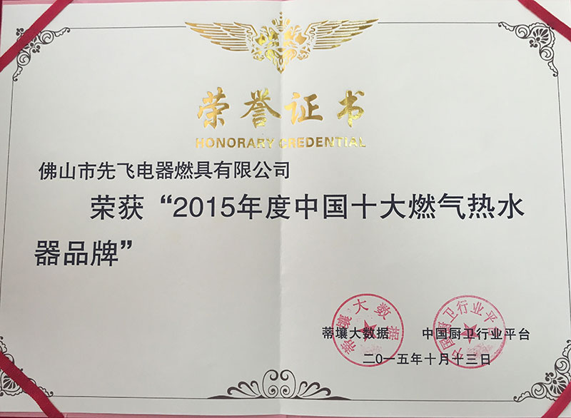 三.2015年10月,先飞公司斩获“2015年度中国十大燃气热水器品牌”!
