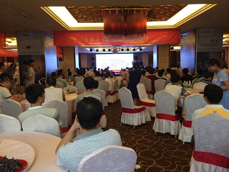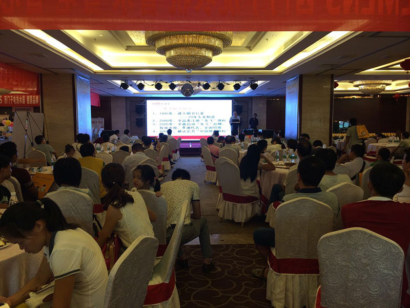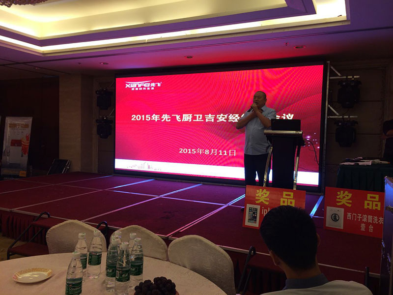 先飞公司营销总经理聂总在会议上向众多先飞新老客户表示了衷心的感谢,并为客户作了行业分析、市场分析、先飞综合优势分析等,向全场客户推介了先飞新品“大吸力” 烟机系列产品、“蒸汽喷洗”烟机系列产品、先飞净水器系列产品、先飞嵌入式电烤箱与电蒸炉产品等,赢得客户们阵阵掌声!让大家对先飞的未来发展充满信心,会议取得预期良好的效果。
