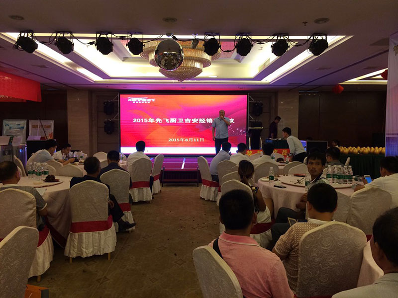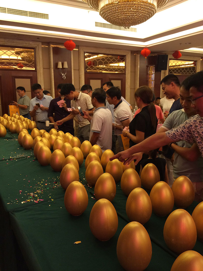 2015年8月11日下午,先飞吉安地区经销商会议在吉安圣欧顿大酒店隆重举行,到会客户180多人。客户打款要货不仅可以享受丰厚的促销政策,还可以通过砸金蛋赢取香港泰国游、iphone6 plus、先飞烟机等大奖,会场气氛非常热烈。