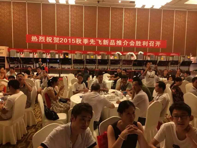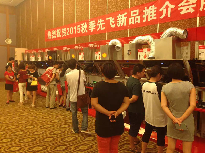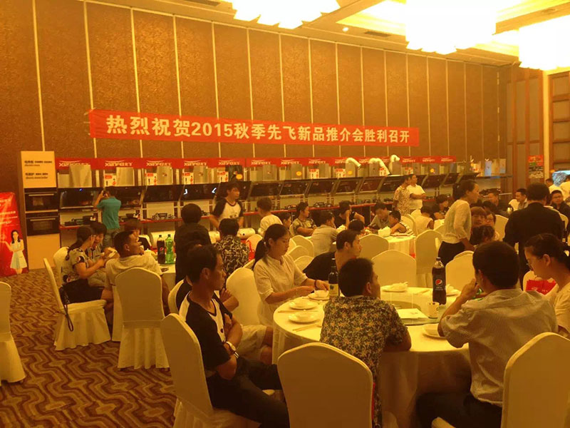 2015年8月18日,衢州先飞经销商会议在衢州国际大酒店隆重举行,先飞公司黄总亲临现场,面对150多名衢州地区先飞分销商朋友们详细分析了行业与市场,讲解了先飞产品规划与未来发展规划,特别是对先飞秋季新品“大吸力“烟机等作了较为详细的说明。