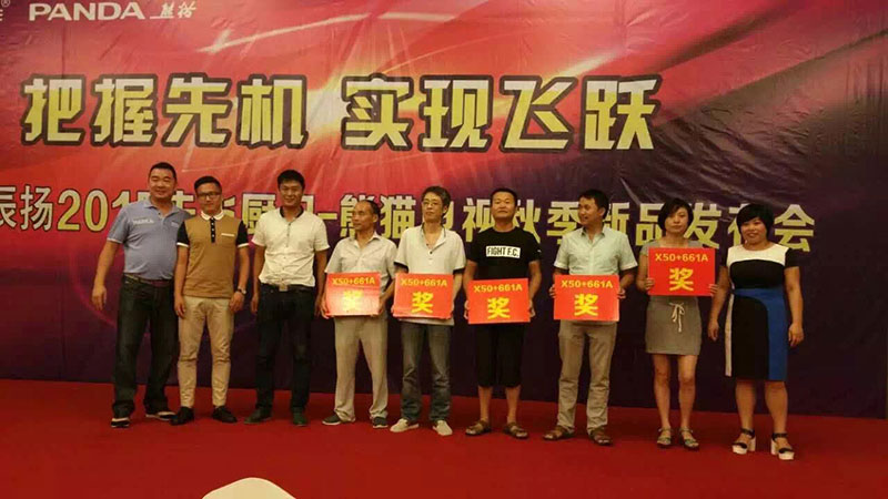 会场上展示了先飞众多新品,共采用了18米展柜,深深吸引经销商朋友们围观挑选产品。先飞大区经理胥总作了会议政策解读,引得客户们纷纷下单要货。会议上颁奖与抽奖齐飞,让众多经销商朋友们高兴而来,满意而归!