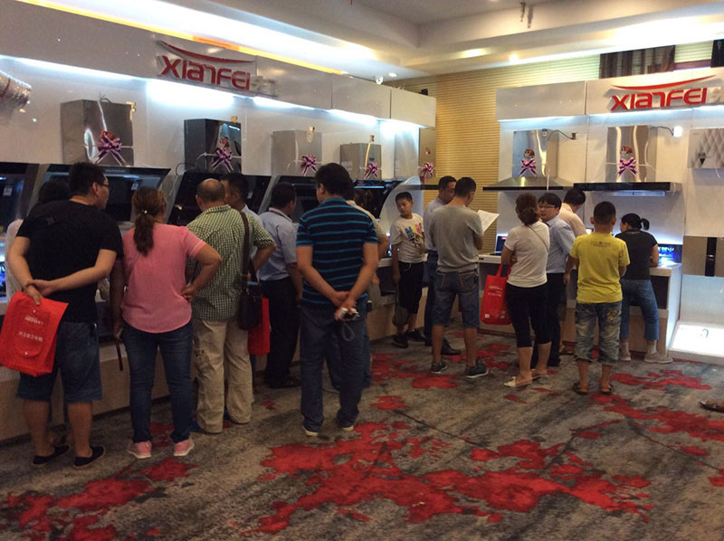 先飞秋季新品“大吸力”烟机系列、先飞净水器系列、先飞蒸烤新品等闪亮登场,让一百多名先飞河南经销商心潮澎湃,情难自禁!选货、交流、刷卡、付现、交谈等让会场激情四溢,势不可挡!