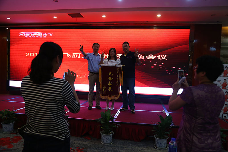 黄总:本次大会,起到了非常积极作用,效果非常理想,区域内分销商朋友凝聚力空前高涨!大家对先飞品牌整体有了更高的认同感!特别是对新款大吸力烟机系列、净水项目、蒸烤箱等,大家积极选货,踊跃下单!应该说,本次大会是成功的一次大会,也是河南先飞十年市场耕耘回报的一次大会!我们一定会再接再厉,努力再创新高!