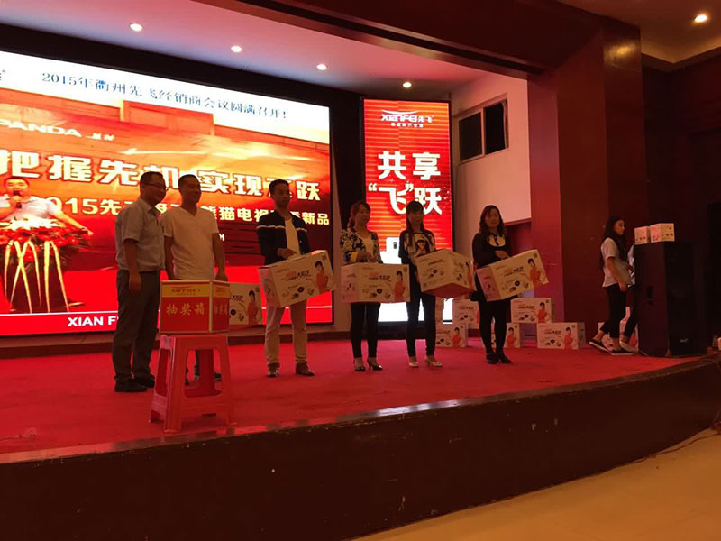 2015.09.10,先飞电器河北邯郸、邢台区域的经销商朋友们欢聚一堂,于邯郸市新凯悦大酒店召开先飞秋季新品发布会!