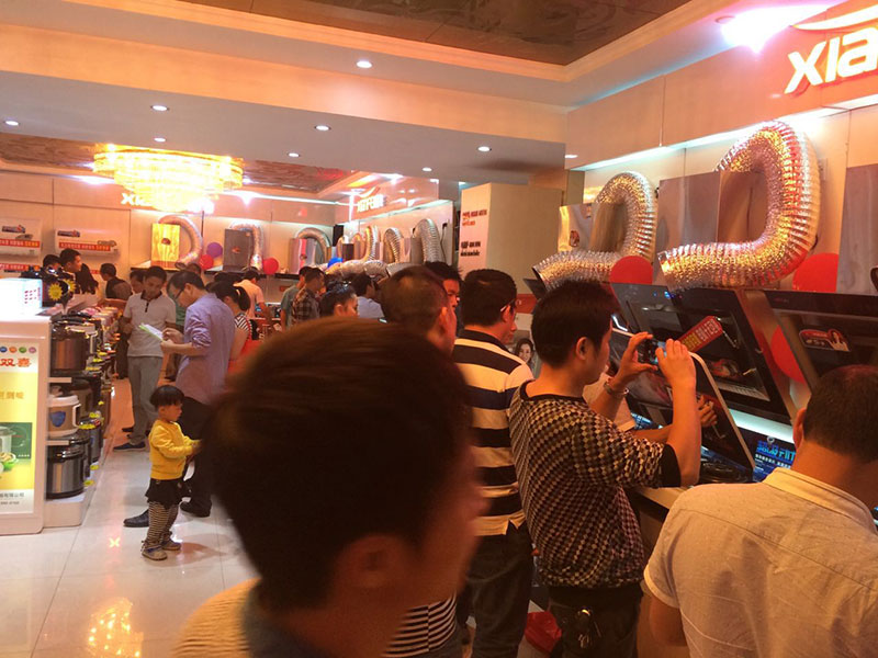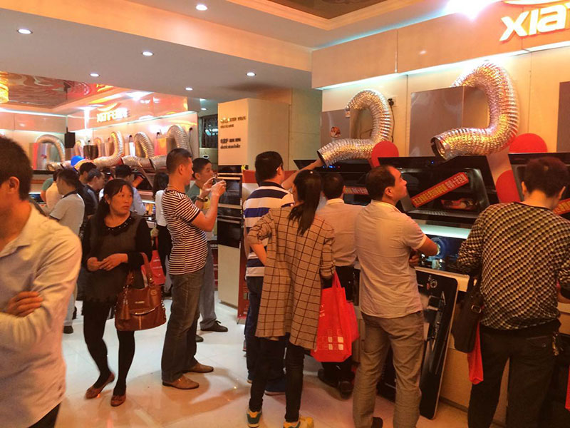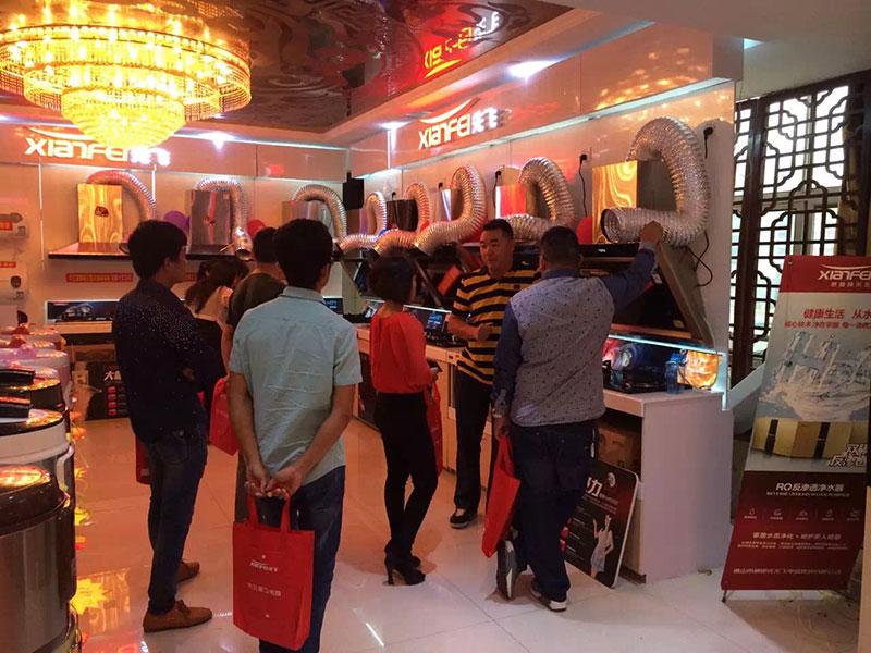 十九米先飞超越版展柜阵势震撼,先飞2015年厨卫新品荣耀亮相,先飞电烤箱、电蒸炉作为厨卫新贵引爆全场,先飞家用净水器更是备受关注,更是被当场拆机研究观摩,引发众多客户围观研讨,被大家一致点赞与看好。