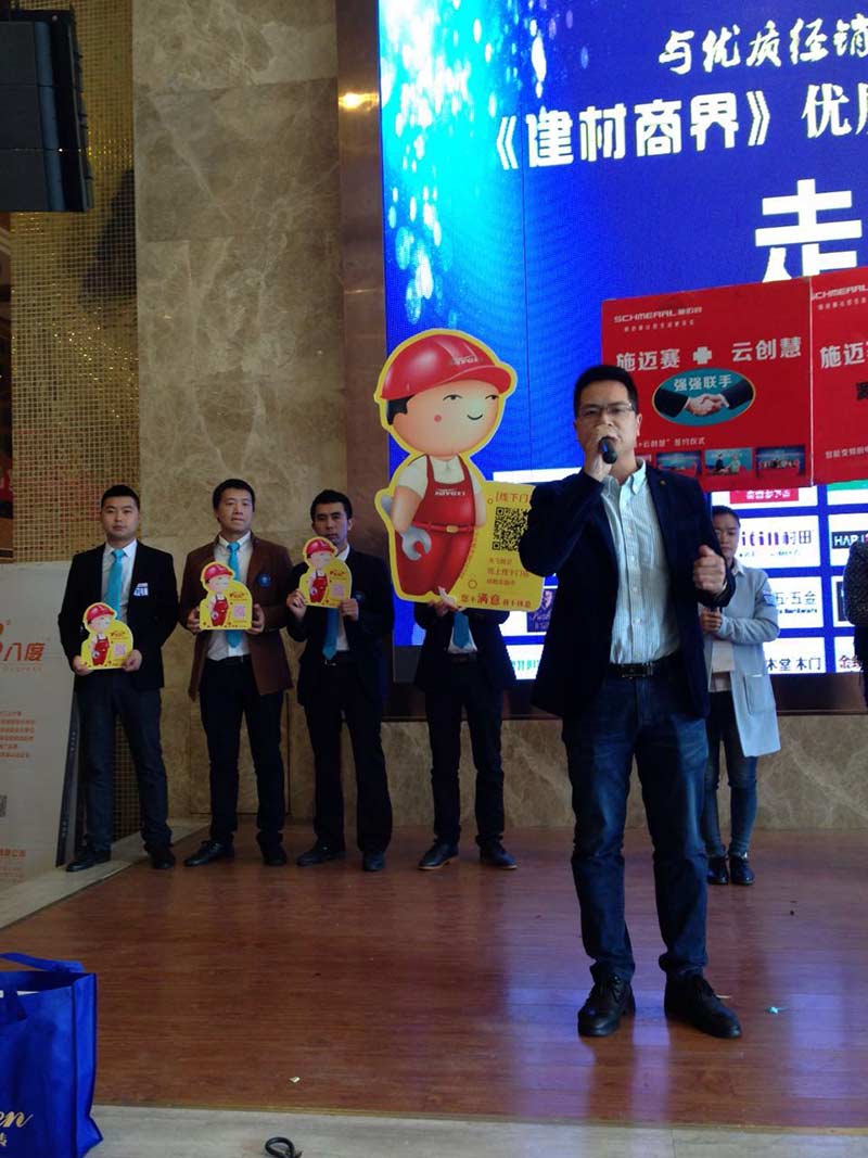 本次乐山招商会,由先飞厨卫西南片区经理陈希勇先生、桓樱商贸副总魏山峰先生以及大区经理若干名共同组建了精明强干的服务团队,帅气的外套搭配蓝领带在整个会场形成了一道独特的风景。