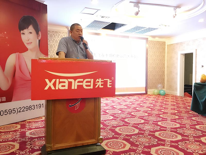 先飞公司黄总、聂总、大区经理林俭富、净水器主管陈磊全部到场与客户亲密互动,泉州经销商张总带领十几人的公司团队更是全力投入,让八十多家到会客户感受到先飞实干的氛围,并将整场会议推向成功与圆满!