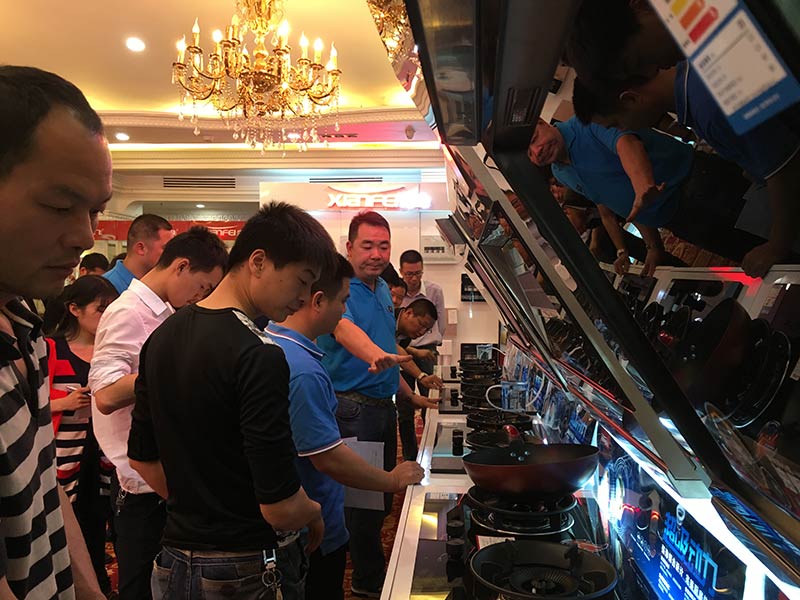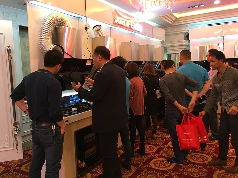 先飞厨卫在会场内共计陈列了25米烟机、灶具、消毒柜、净水器、燃热、电热等产品,其中烟机与灶具基本上都是新品占主导地位。向全国其他兄弟区域一样,先飞新品烟机、新品灶具、新品净水器再一次上演被层层叠叠围观、被你争我抢下单,气场强悍,人潮澎湃!