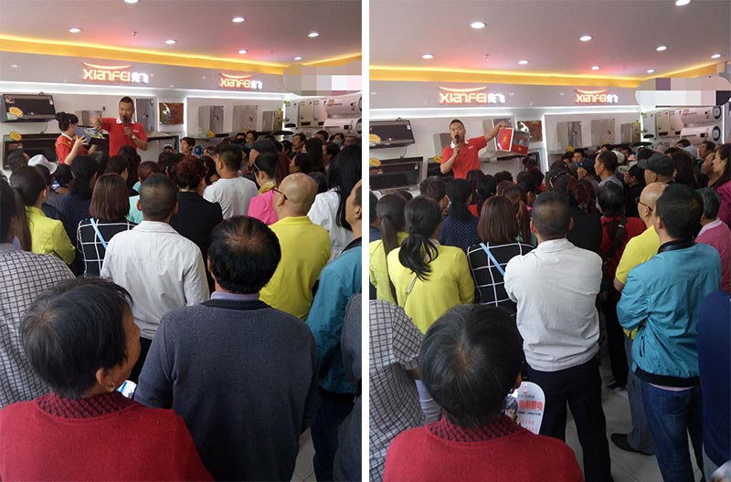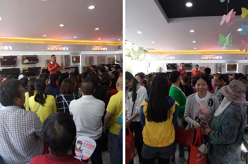 先飞2016年春季新品一到货,赵总就和他的团队研究机器,找卖点,寻差异,找市场切入点。为了迎接五一销售旺季积极准备,提前两周就进行了活动策划!与商场确定方案,印制DM单页,深入到小区去发放优惠卷与预约劵等。并与商场领导沟通联合其他品牌深入农村市场发DM单页,搭帐篷开展品牌宣传及促销推广,全方位宣传先飞品牌!