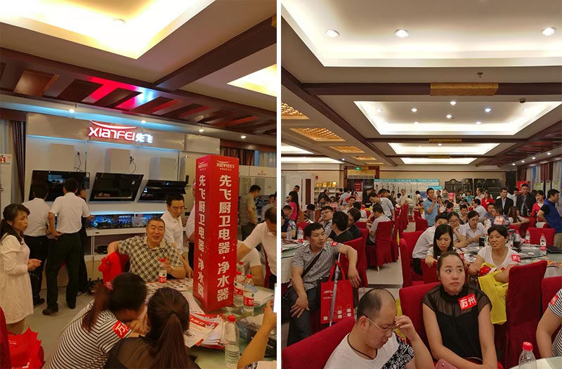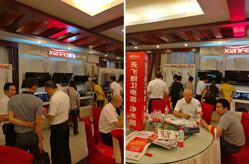 先飞电器经过精心筹备,现场展示了最新的负离子会呼吸、油烟分离和高温蒸汽清洗系列烟机,2016年重磅推出的大火盖猛火系列灶具,使用了2018款超越版展架, 体现了先飞品牌的领先形象,在会议现场获得了众多客户的关注,详细了解先飞精致的产品工艺和功能卖点,并纷纷留下联系方式,以便后期详细洽谈。