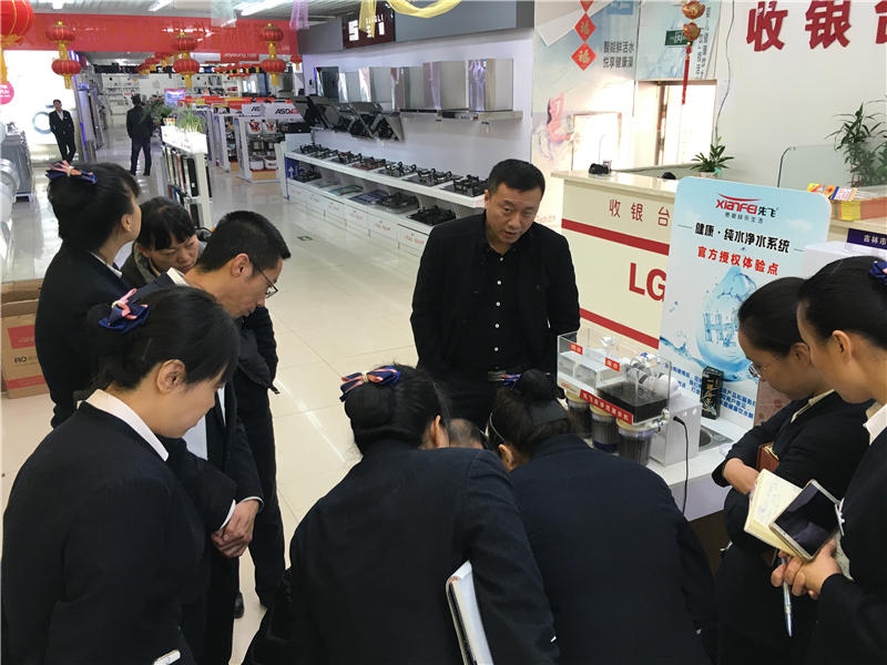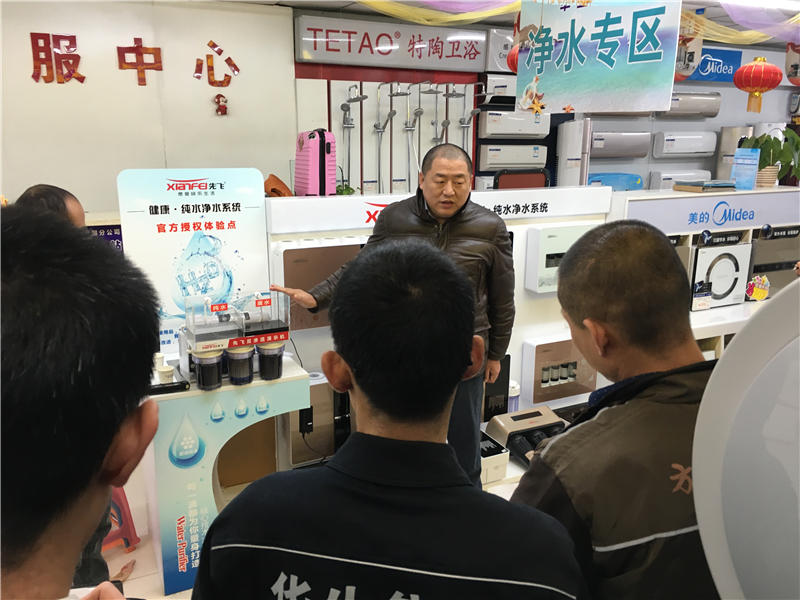先飞电器与吉林华生是多年战略合作伙伴,在2016年10月,先飞公司聂总、先飞净水器甘工程师、先飞东北大区王经理等组成先飞净水器专业培训小组,全面走访吉林华生系统各大门店,专题宣讲先飞净水器!