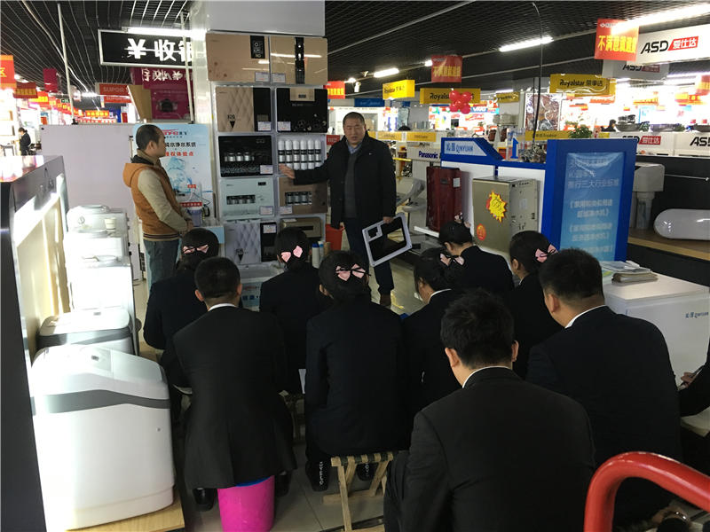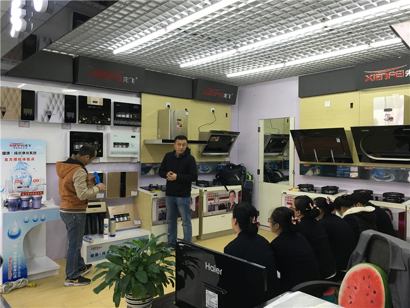10月13日,先飞公司聂总、先飞净水器甘工程师、先飞东北大区王经理等先飞净水器专业培训小组,在华生总部面对华生各门店200多名小家电部门员工,开展了先飞净水器视频培训会议。并建立了两百多人的微信大群,及时发布产品信息,及时互动沟通,使大家对先飞净水器产品热情高涨!