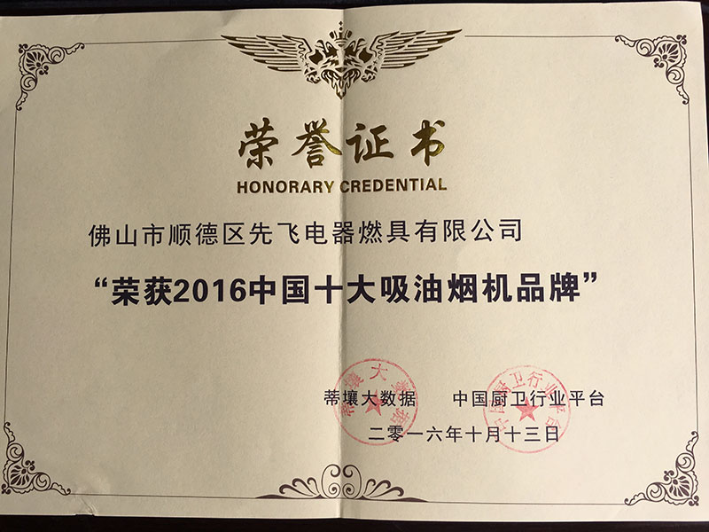 在荣获2015年吸油烟机十大品牌之后,先飞又一次经过中国厨卫行业平台与帝壤大数据等权威媒体平台严格投票与评选,再一次荣获2016年中国吸油烟机十大品牌!我们衷心感谢众多亲朋好友、先飞经销商朋友、先飞用户等纷纷投给先飞的神圣一票!更要衷心感谢先飞全国经销商朋友全心全意为先飞品牌辛勤付出与努力!