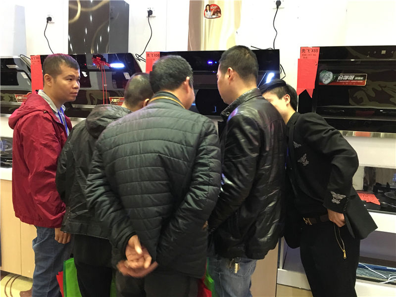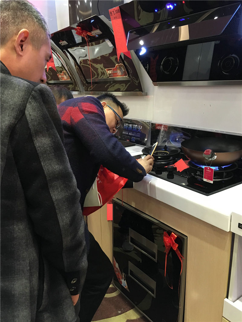 先飞2017年新品受到大家空前好评,先飞客户们积极选产品、下订单、抽奖品,会场上一片热火朝天,大家忙得不亦乐乎!先飞公司聂总、烟机廖主管、灶具罗主管等亲临现场为大家讲解新品,为大家提供面对面服务,让火爆现场更加火上浇油锦上添花!
