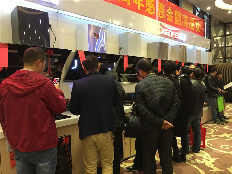 2016年12月9日下午,浙江省台州市名记大酒店迎来了200多名台州地区先飞经销商伙伴们!非常感谢到会的各位客户,一进场马上围到先飞13米展柜前,认真研究先飞2017年新品烟机X71 X72 X77 X78,点火演示先飞2017年新品灶具902A 920A 921A燃烧效果等。