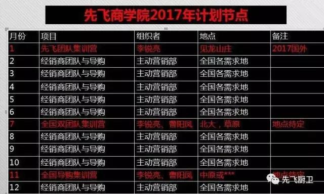 先飞商学院2017年培训节点如下: