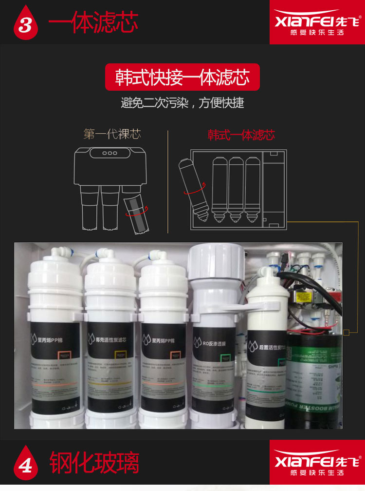 韩式快接一体滤芯,避免二次污染,方便快捷;