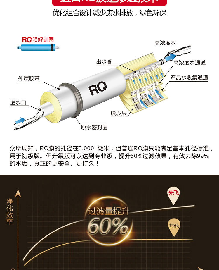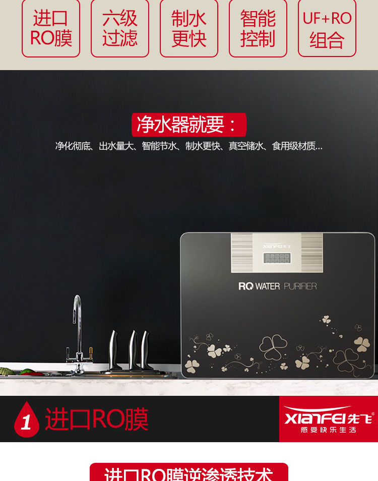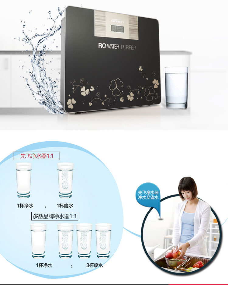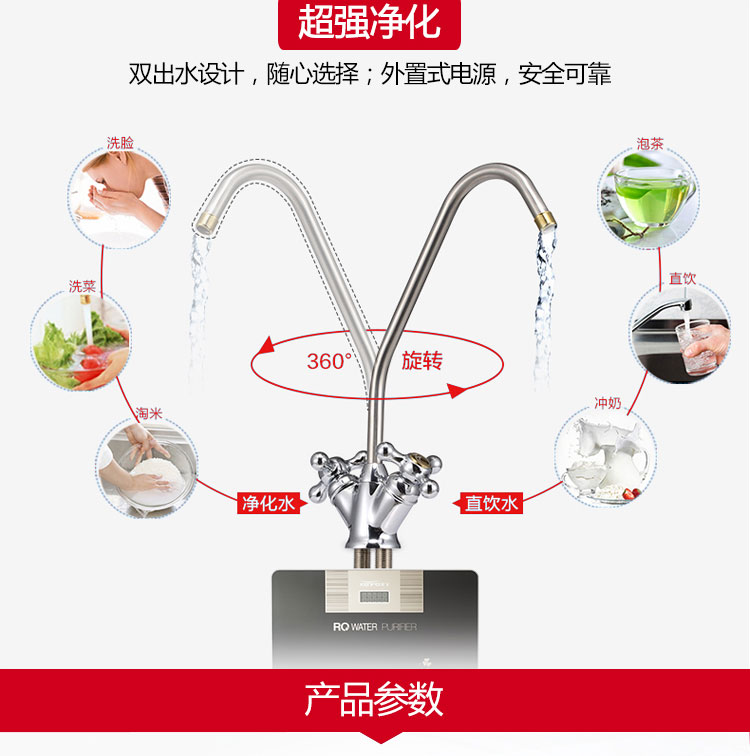UF+RO组合,超强净化,双出水设计,节能环保;
