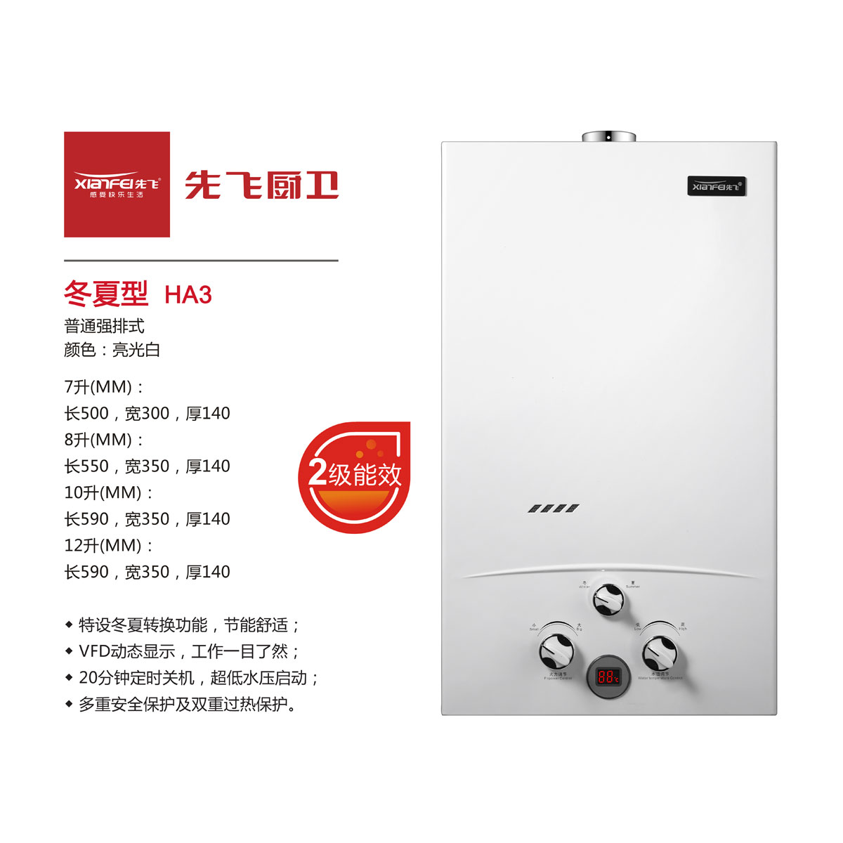 20分钟定时关机,超低水压启动;